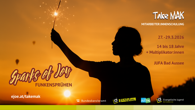 Dieses TakeMAK steht voll unter dem Motto Funkensprühen. Du entscheidest, was deinen Funken entfacht – neue Skills, gute Gespräche oder Action mit deiner Gruppe.